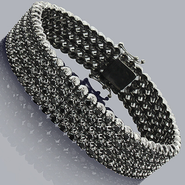 This Men's Diamond Designer bracelet is made from 10k Gold, weighing 66 grams and is 16 mm wide and length inches. This Men's Diamond bracelet features 11 carats of Black Diamonds, showcasing a chain and is available in 10k white gold, yellow gold and rose gold as well as 14k gold, 18k gold and platinum as a custom order.