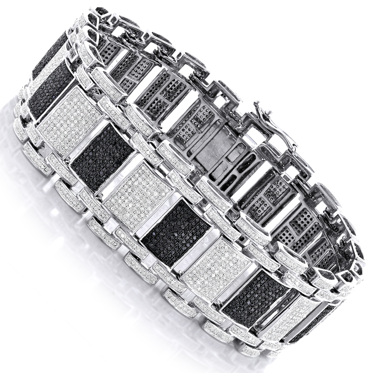 10K Gold Black White Diamond Bracelet for Men | Pave Set | SI | 8.47ct