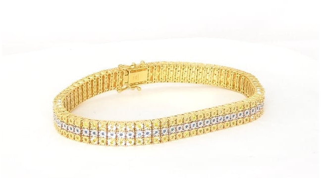 10K Gold Blue Yellow Diamond Bracelet for Men | 3 Rows | Bezel Set | SI | 1.75ct
