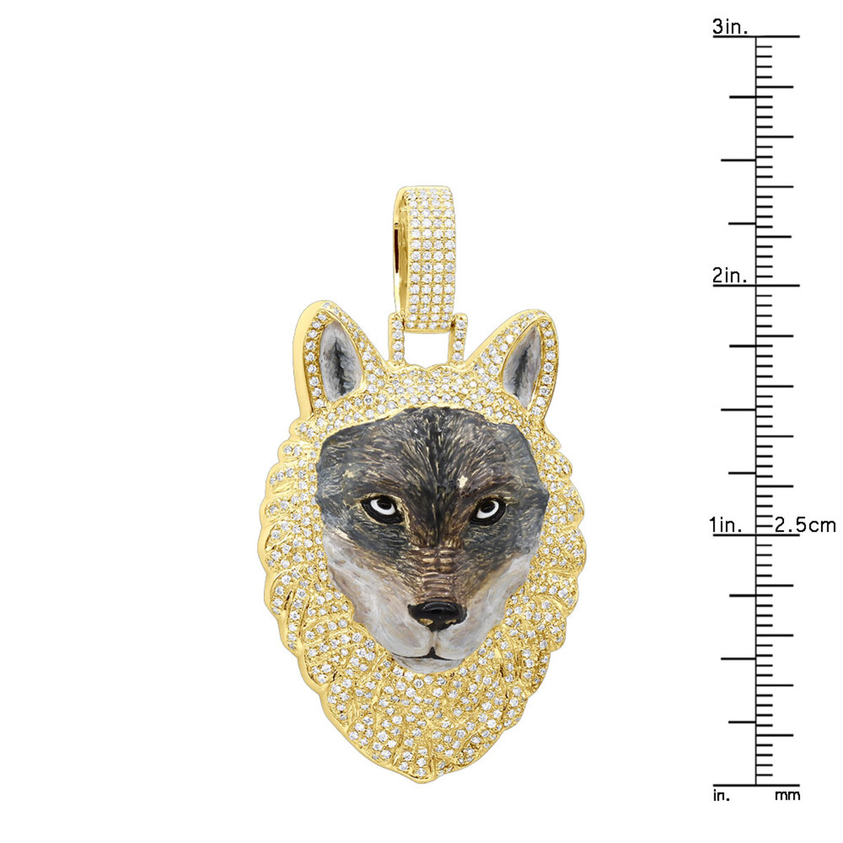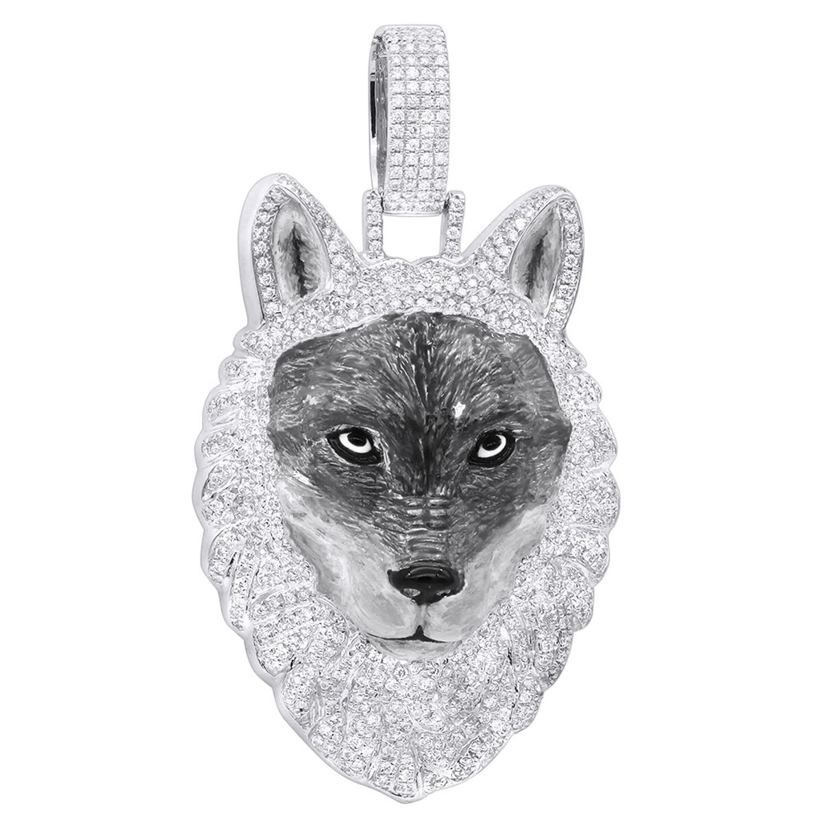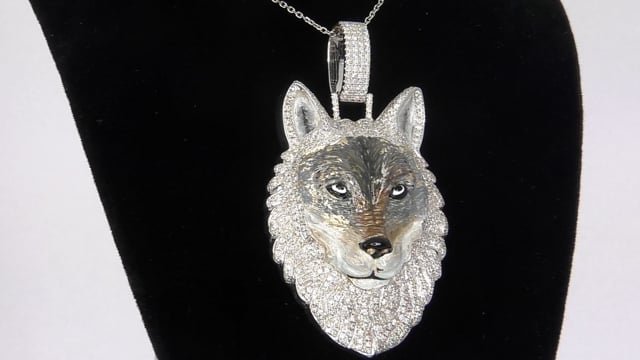 10K Gold Diamond Wolf Pendant for Men | Animal | 2ct