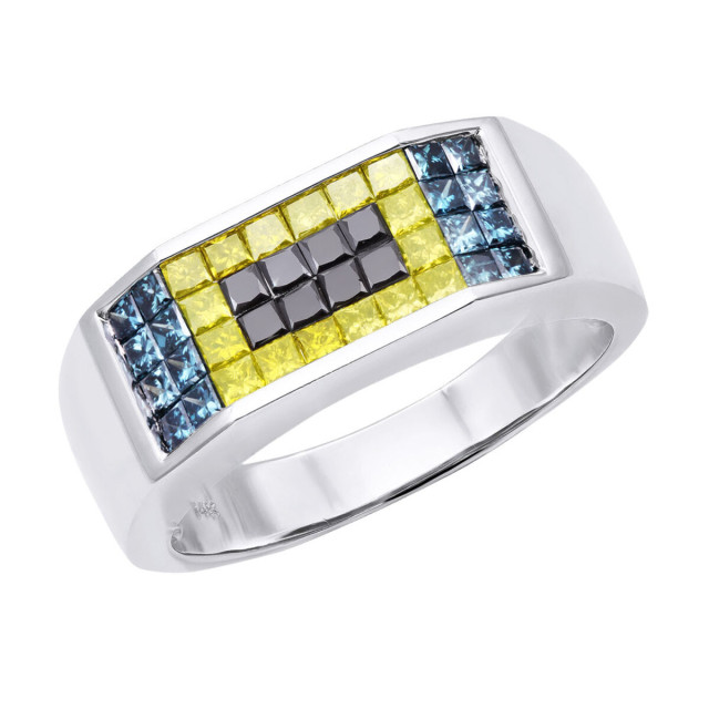 This Men's Diamond Unique ring is made from 14k Gold, weighing 8 grams. This Men's Diamond ring features 1.88 carats of Blue Diamonds and is available in 14k white gold, yellow gold and rose gold as well as 18k gold and platinum as a custom order.