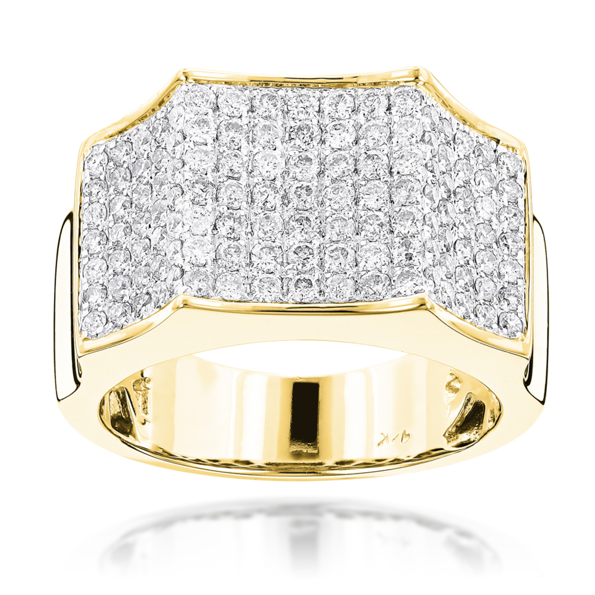 This Men's Diamond Unique ring is made from 14k Gold, weighing 14 grams. This Men's Diamond ring features 2.07 carats of White Diamonds and is available in 14k white gold, yellow gold and rose gold as well as 18k gold and platinum as a custom order.