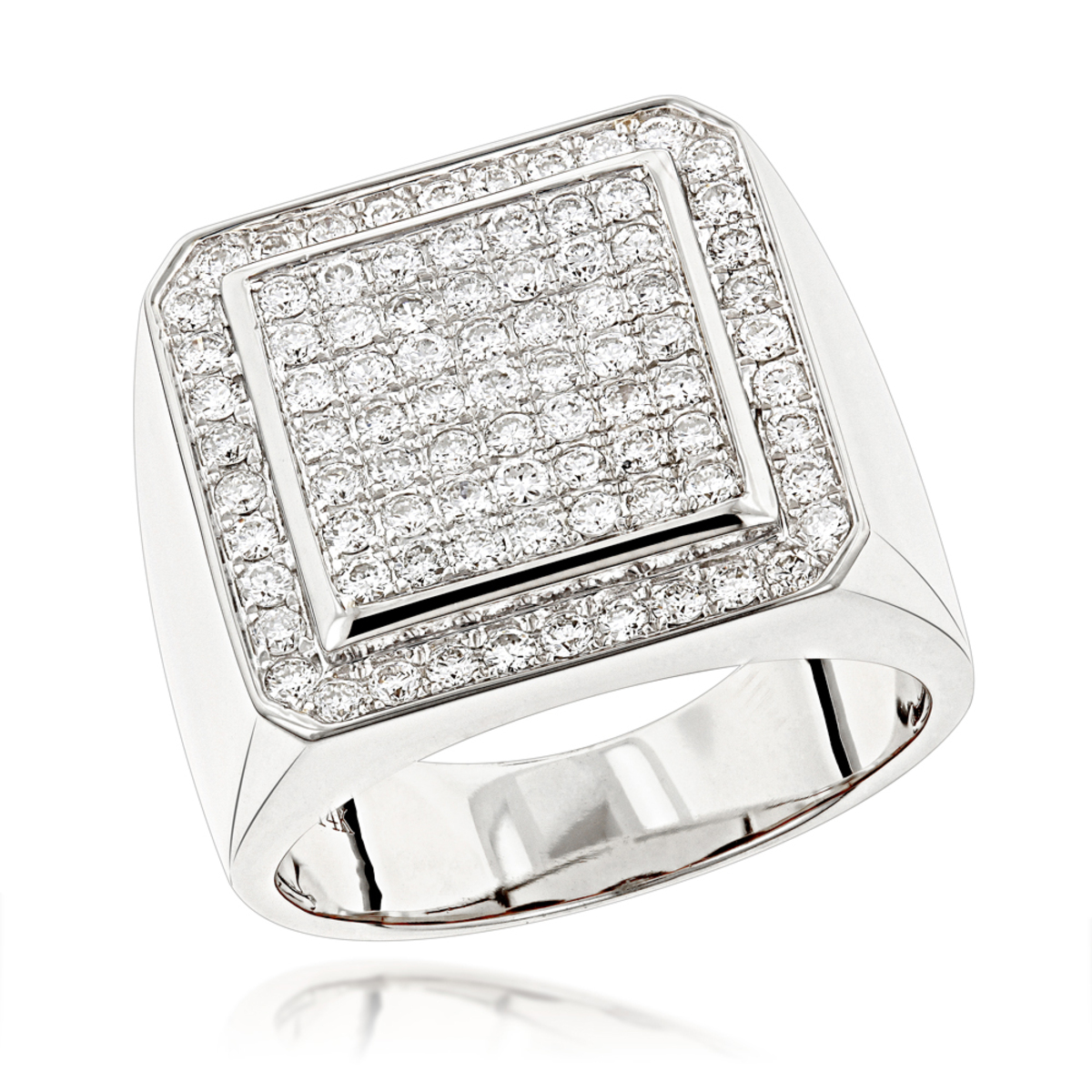 This Men's Diamond Pinky ring is made from 14k Gold, weighing 15 grams. This Men's Diamond ring features 1.63 carats of White Diamonds and is available in 14k white gold, yellow gold and rose gold as well as 18k gold and platinum as a custom order.
