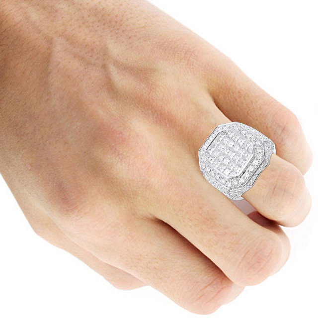 This Men's Diamond Statement ring is made from 14k Gold, weighing 25.3 grams. This Men's Diamond ring features 10.1 carats of White Diamonds and is available in 14k white gold, yellow gold and rose gold as well as 18k gold and platinum as a custom order.