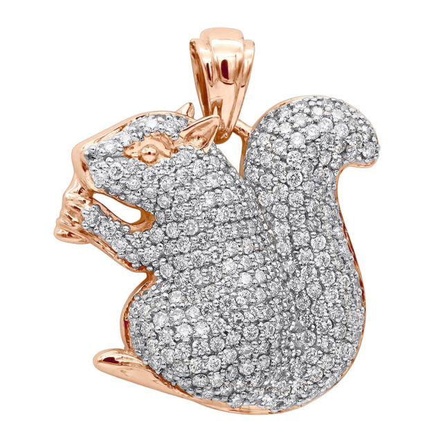 14K Gold Diamond Squirrel Pendant for Women | Animal | 2.5ct