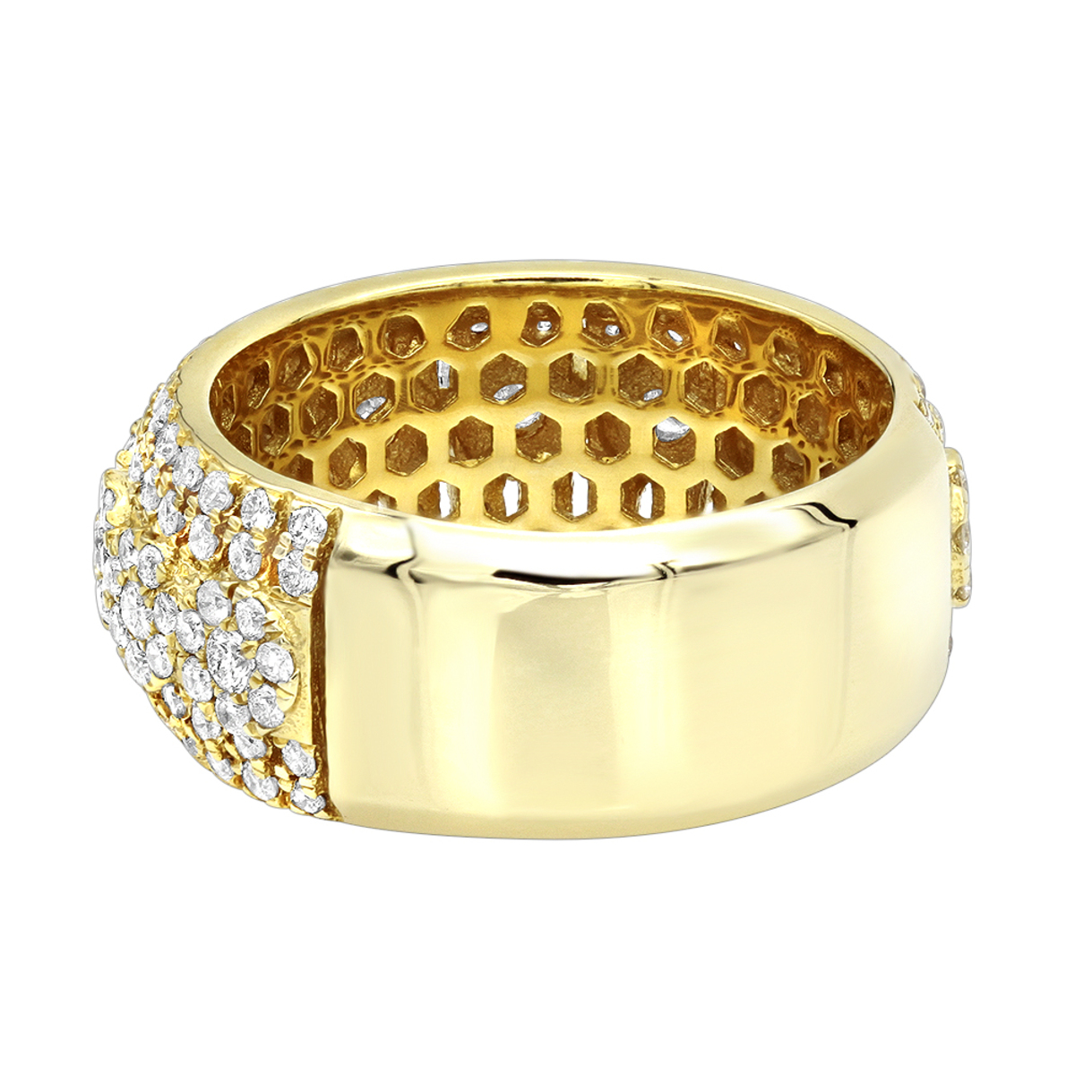 This Men's Diamond Unique ring is made from 14k Gold, weighing 13 grams. This Men's Diamond ring features 2.5 carats of White Diamonds and is available in 14k white gold, yellow gold and rose gold as well as 18k gold and platinum as a custom order.