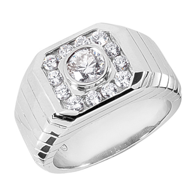 This Men's Diamond Birthstone ring is made from 14k Gold, weighing 15 grams and is 12.9 mm wide. This Men's Diamond ring features 1.28 carats of White Diamonds and is available in 14k white gold, yellow gold and rose gold as well as 18k gold and platinum as a custom order.