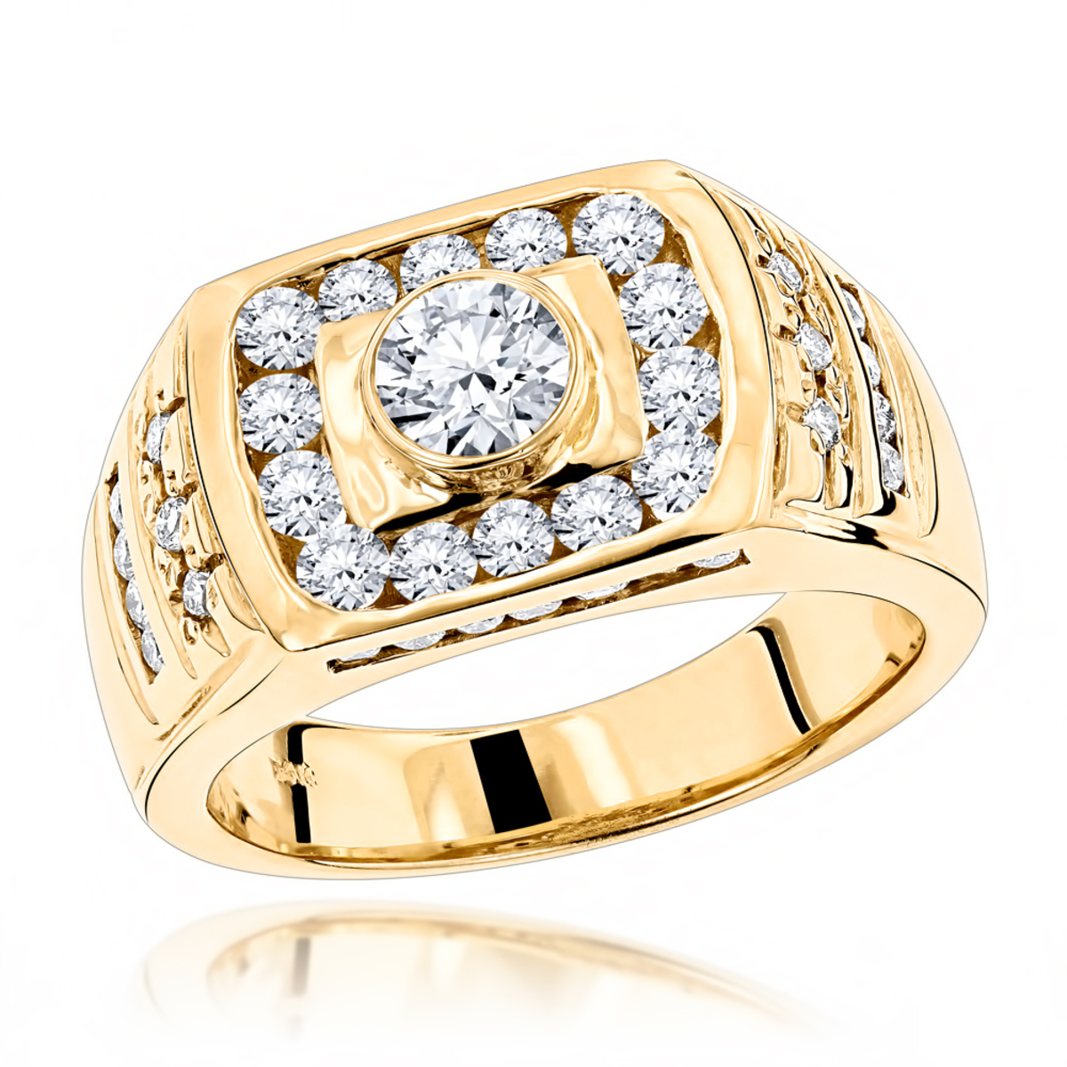14K Gold Natural or Lab-Grown Diamond Bezel Ring for Men 1.86ct