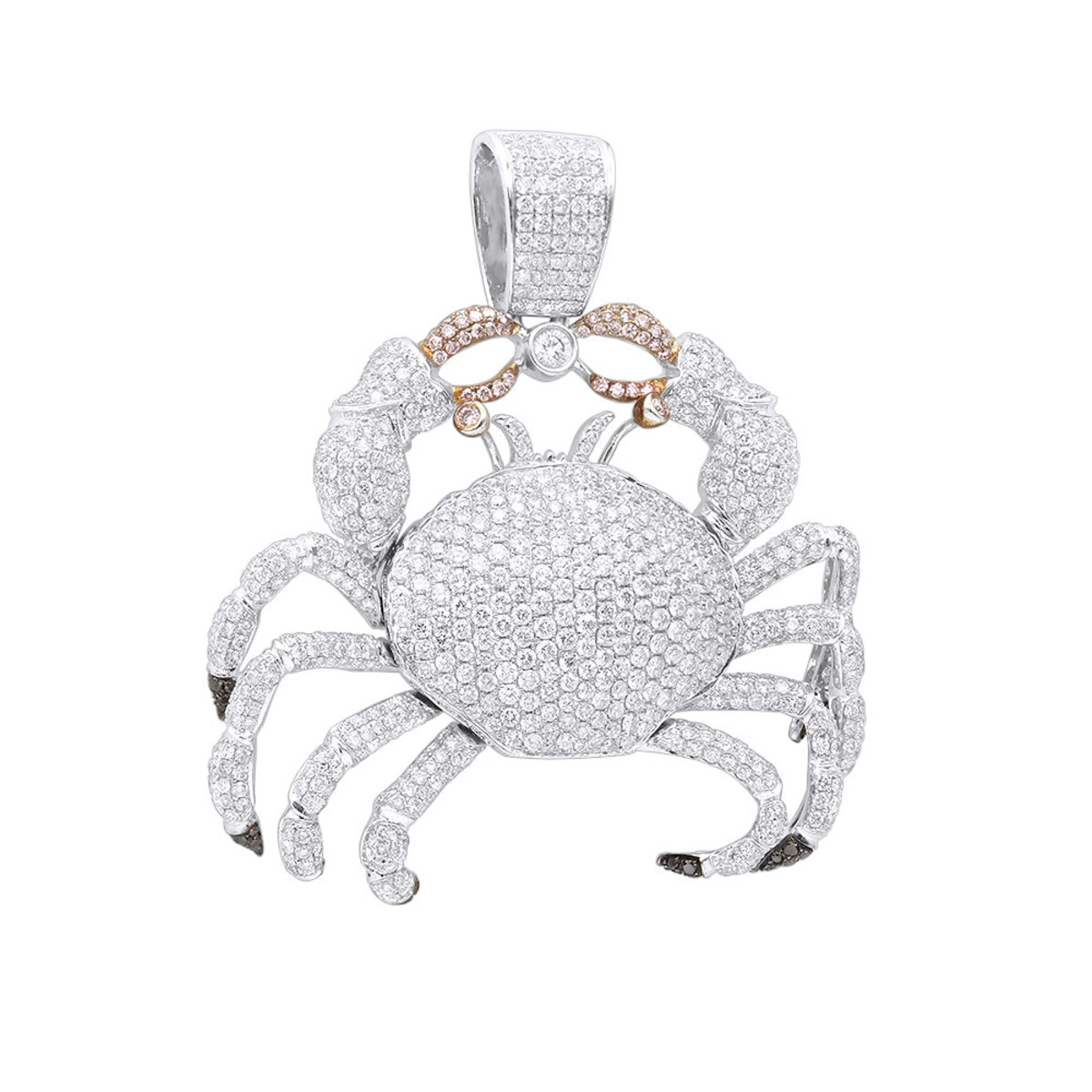 14K Gold White Pink Black Diamond Cancer Pendant for Men | Zodiac Sign | 10.46ct