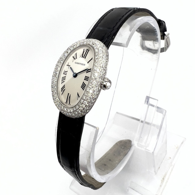 This Women's Cartier Baignoire is a luxurious and stylish watch. The watch is made of 18k Gold, offering a premium feel. The case measures 22 mm. The case is crafted from 18k Gold. The bracelet is made of Black Genuine Leather. The bezel is made of Gold and is set with White. The dial is White, enhancing its visual appeal. Powered by a Swiss-Quartz movement. Offered in Good condition, and comes with a seller's warranty of 60 months. Also available on custom order with additional options.