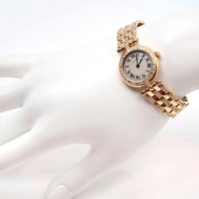 This Women's Cartier Panthere Vendome is a luxurious and stylish watch. The watch is made of 18k Gold, offering a premium feel. The case measures 23 mm. The case is crafted from 18k Gold. The bracelet is made of Yellow Gold. The bezel is made of Gold and is set with White. The dial is Cream, enhancing its visual appeal. Powered by a Quartz movement. Offered in Good condition, and comes with a seller's warranty of 60 months. Also available on custom order with additional options.