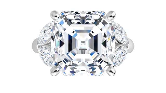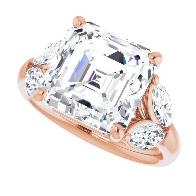 Abigail Women's 14K Gold Asscher and Marquise Cut Lab-Grown Diamond Accented Engagement Ring | Prong Set | 6ct