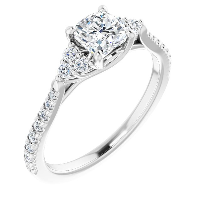 Adalynn Women's Cushion and Round Natural Diamond Thin French-Set Engagement Ring | 14K Gold | 1ct