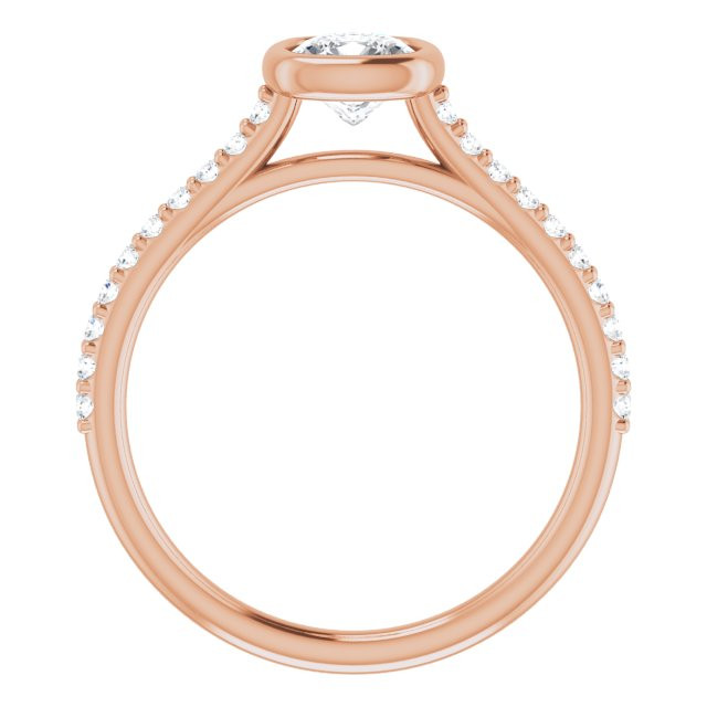 Alice Women's 14K Gold Cushion and Round Cut Natural Diamond Engagement Ring | Bezel Shared Prong Set