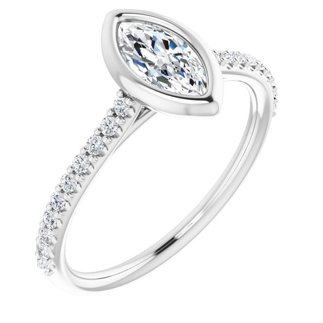 Alice Women's Marquise and Round Natural Diamond Bezel Engagement Ring | 14K Gold