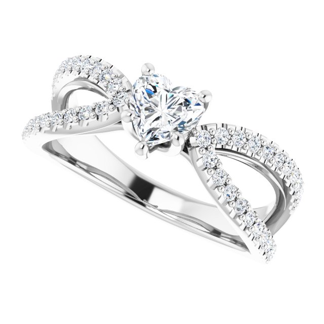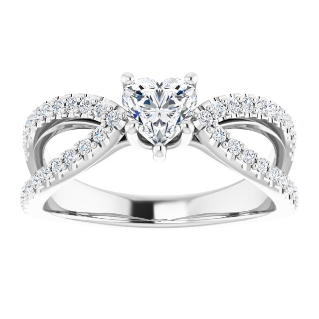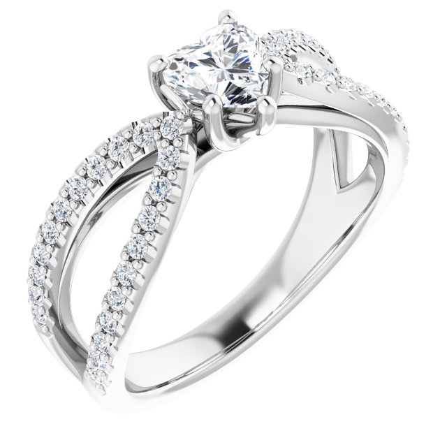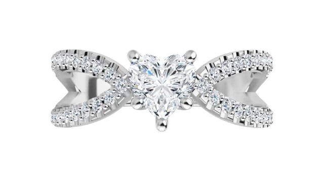 Amara Women's 14K Gold Heart and Round Cut Natural Diamond Accented Thin Engagement Ring | Prong Shared Set