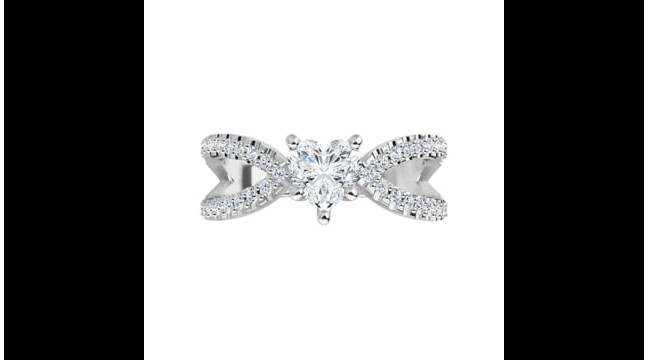Amara Women's 14K Gold Heart and Round Cut Natural Diamond Accented Thin Engagement Ring | Prong Shared Set