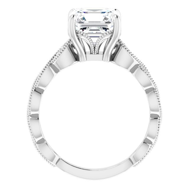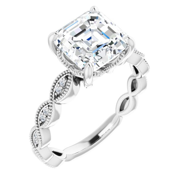Anna Women's 14K Gold Asscher and Round Cut Natural Diamond Accented Engagement Ring | Prong Pinpoint Set | 3ct