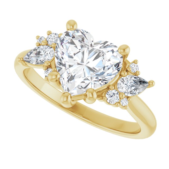 Annie Women's 14K Gold Heart and Pear and Round Cut Lab-Grown Diamond Accented Thin Engagement Ring | Prong Set | 2ct