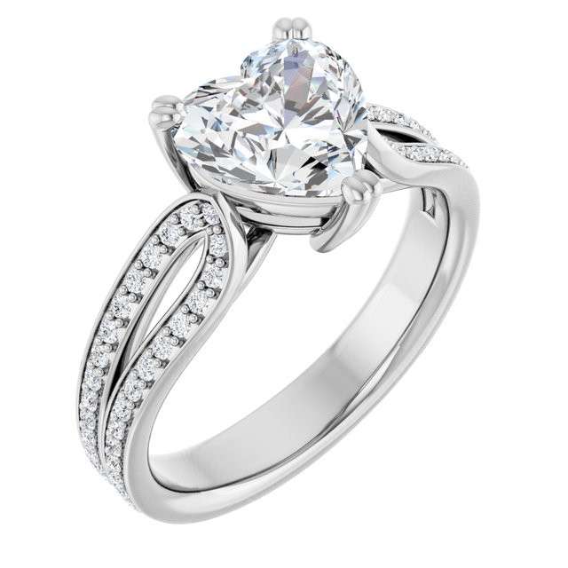 Aria Women's Heart and Round Natural Diamond Accented Engagement Ring | 14K Gold | 4ct
