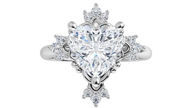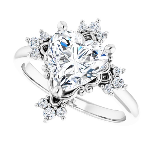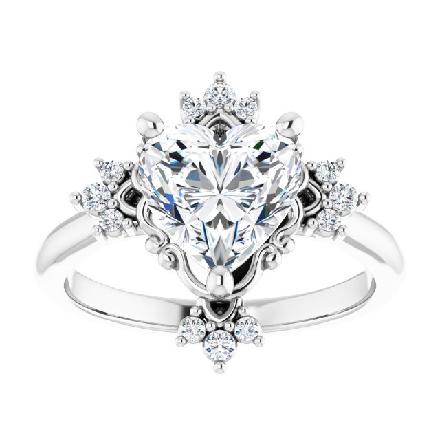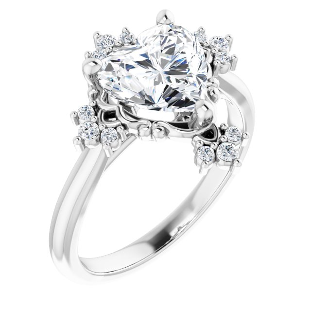Arianna Women's 14K Gold Heart and Round Cut Lab-Grown Diamond Accented Thin Engagement Ring | Prong Shared Set | 2ct