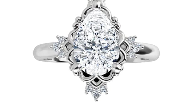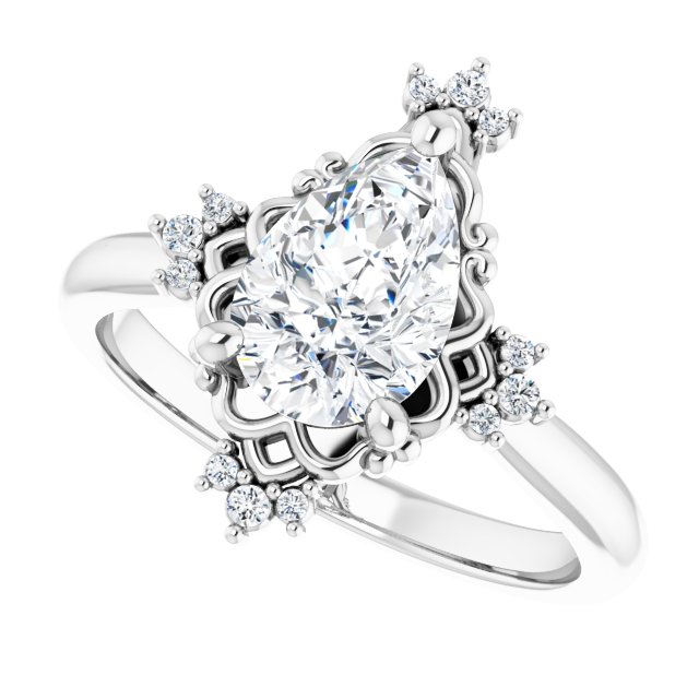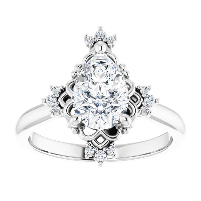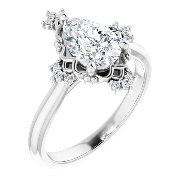 Arianna Women's 14K Gold Pear and Round Cut Natural Diamond Accented Thin Engagement Ring | Prong Shared Set | 2ct