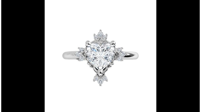 Arianna Women's Heart and Round Natural Diamond Accented Thin Engagement Ring | 14K Gold