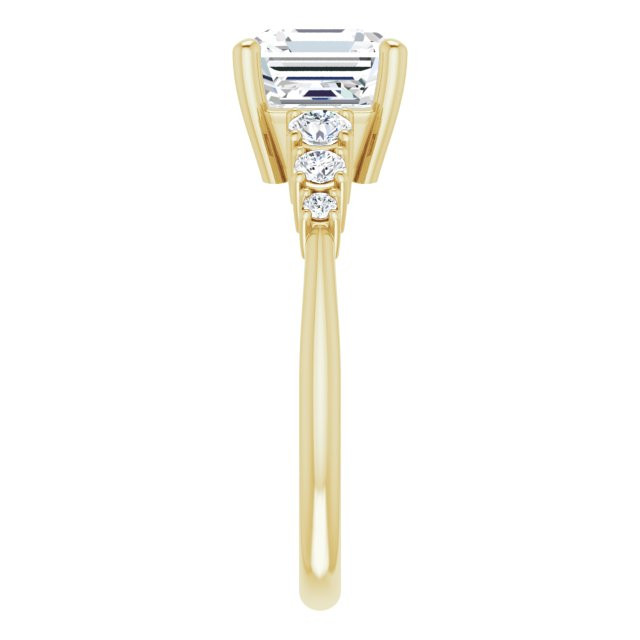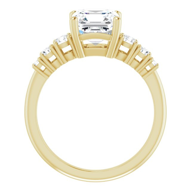 Ariel Women's 14K Gold Asscher and Round Cut Lab-Grown Diamond Accented Thin Engagement Ring | Prong Set | 2ct