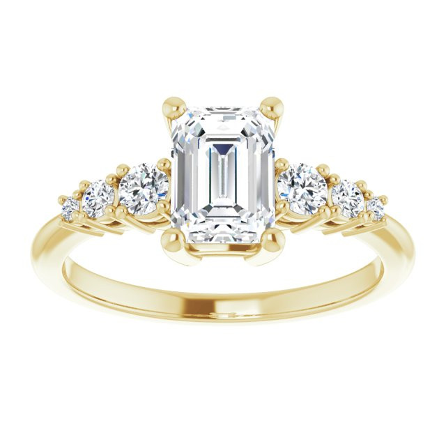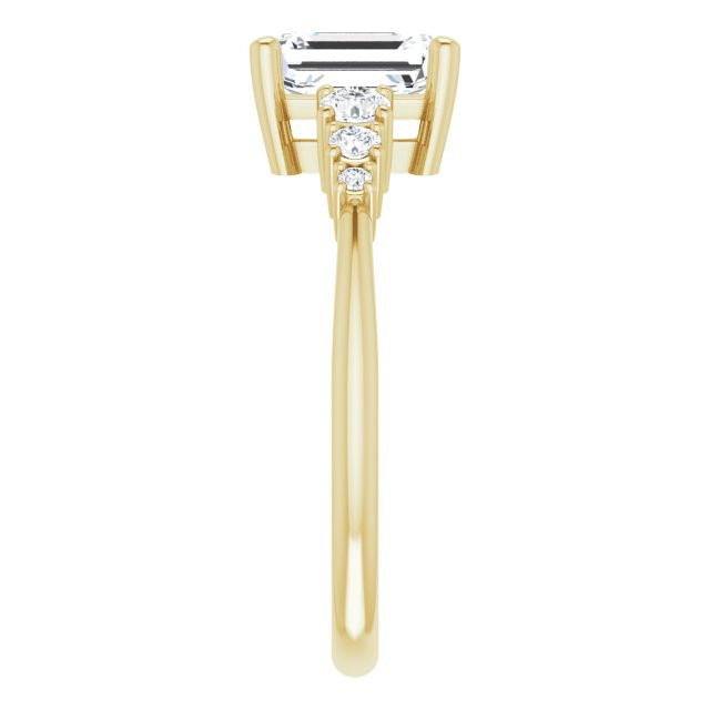 Ariel Women's 14K Gold Emerald and Round Cut Natural Diamond Accented Thin Engagement Ring | Prong Set | 1ct