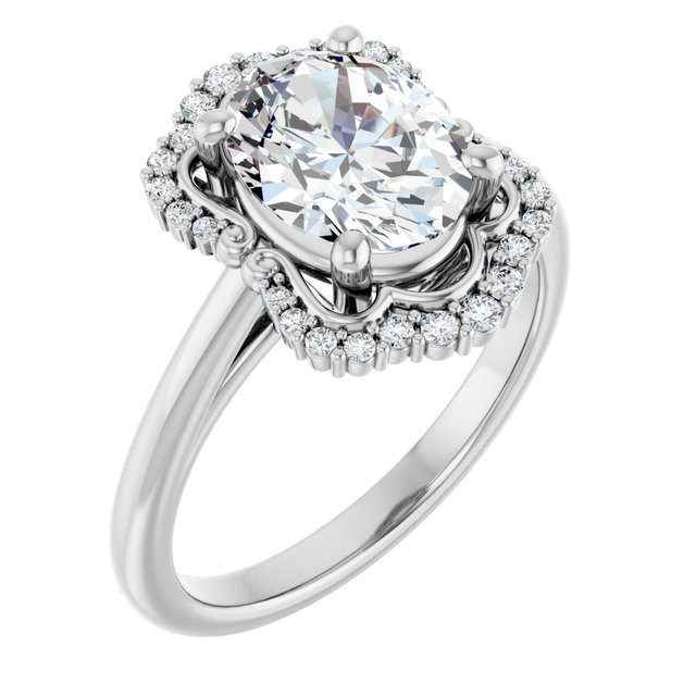 Ashley Women's 14K Gold Oval and Round Cut Lab-Grown Diamond Thin Engagement Ring | Prong Shared Set | 2ct