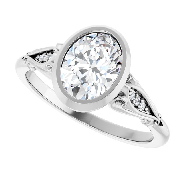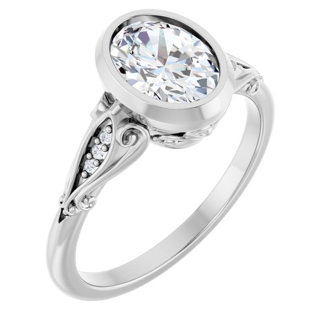 Aubree Women's 14K Gold Oval and Round Cut Natural Diamond Thin Engagement Ring | Bezel Pinpoint Set | 1ct