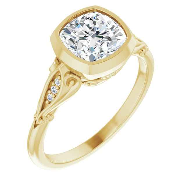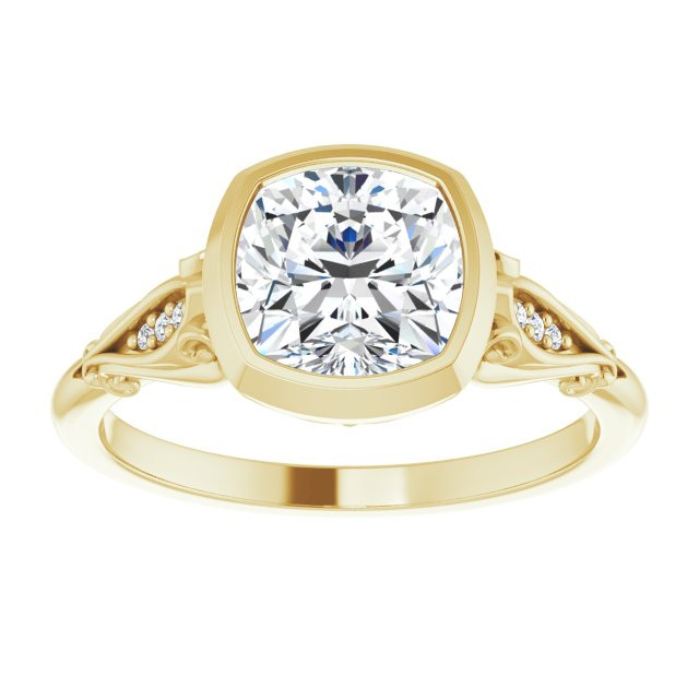 Aubree Women's Cushion and Round Lab-Grown Diamond Bezel Thin Engagement Ring | 14K Gold | VS1 | 2ct