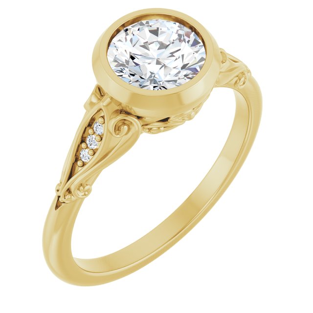 Aubree Women's Round Natural Diamond Bezel Thin Engagement Ring | 14K Gold | 1ct