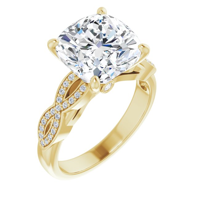 Aurora Women's 14K Gold Cushion and Round Cut Natural Diamond Infinity Engagement Ring | Prong Bezel Pinpoint Set | 5ct