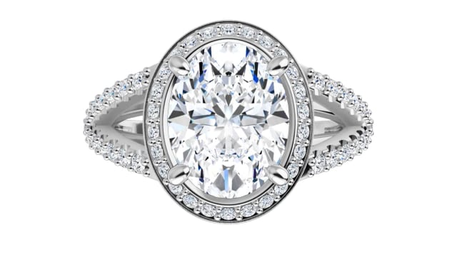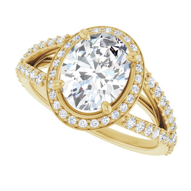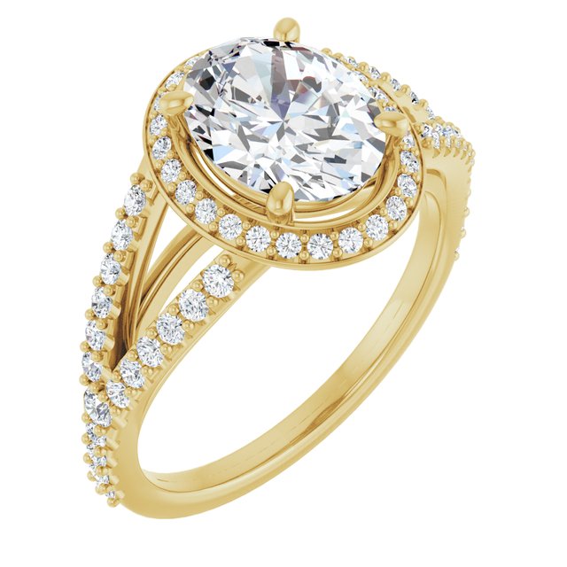 Autumn Women's 14K Gold Oval and Round Cut Lab-Grown Diamond Engagement Ring | Prong Pinpoint Shared Set | 2ct