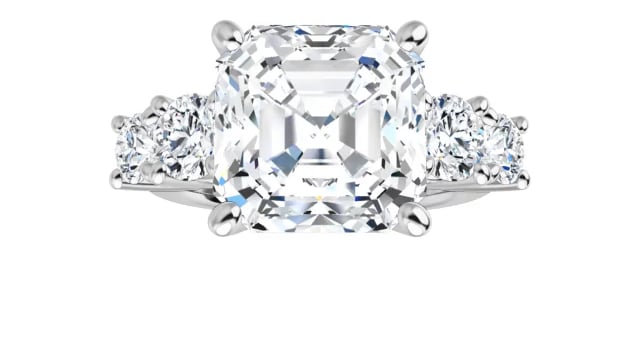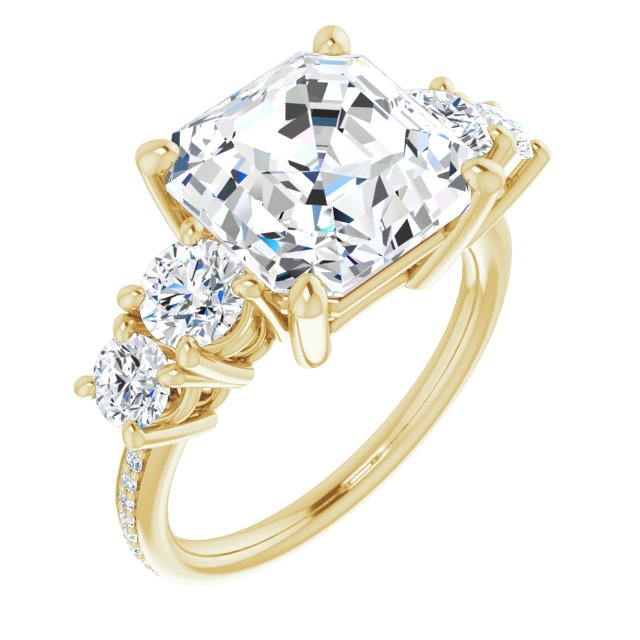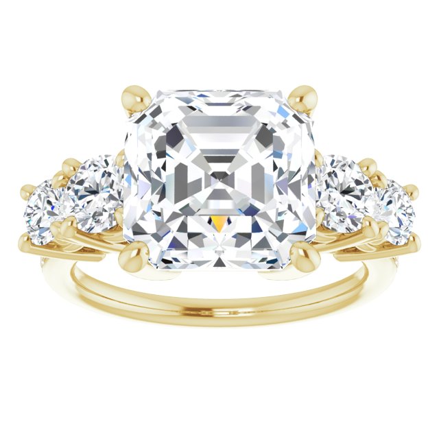 Avery Women's 14K Gold Asscher and Round Cut Lab-Grown Diamond Five-Stone Engagement Ring | Prong Pinpoint Set | 6ct