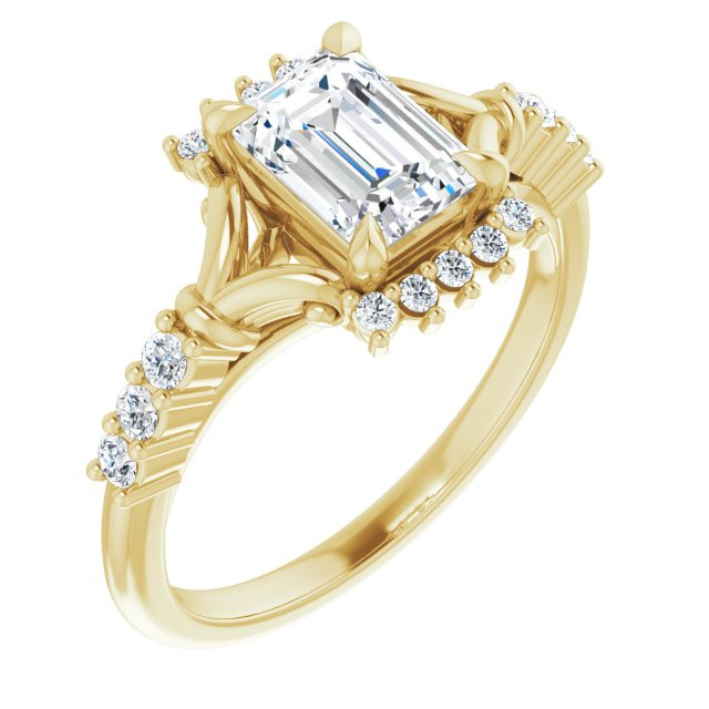 Blair Women's 14K Gold Emerald and Round Cut Natural Diamond Accented Thin Engagement Ring | Claw Prong Shared Set | 1ct