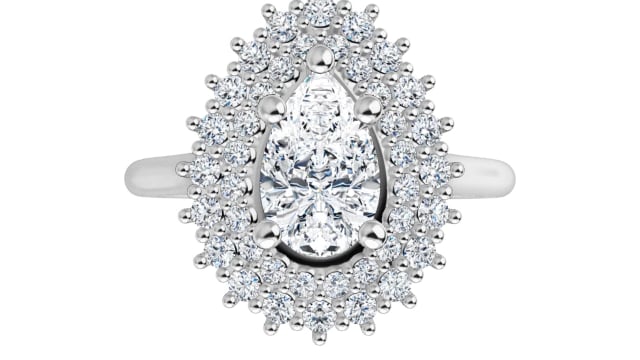 Blake Women's Pear and Round Natural Diamond Thin Halo Engagement Ring | 14K Gold | 1ct