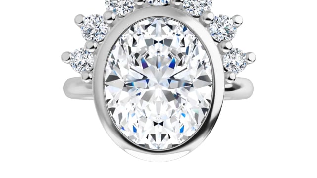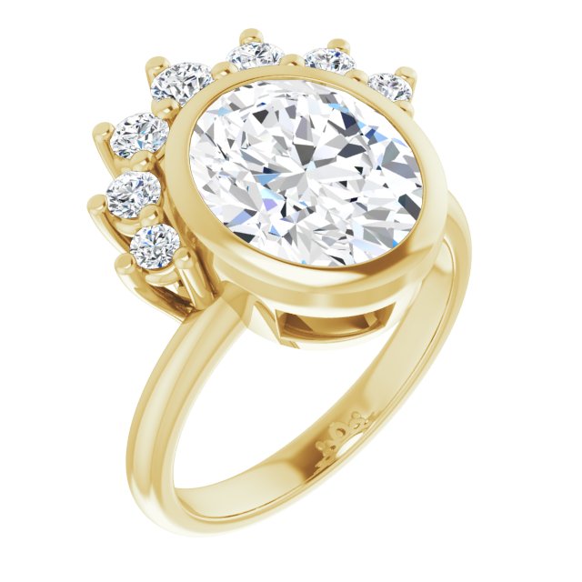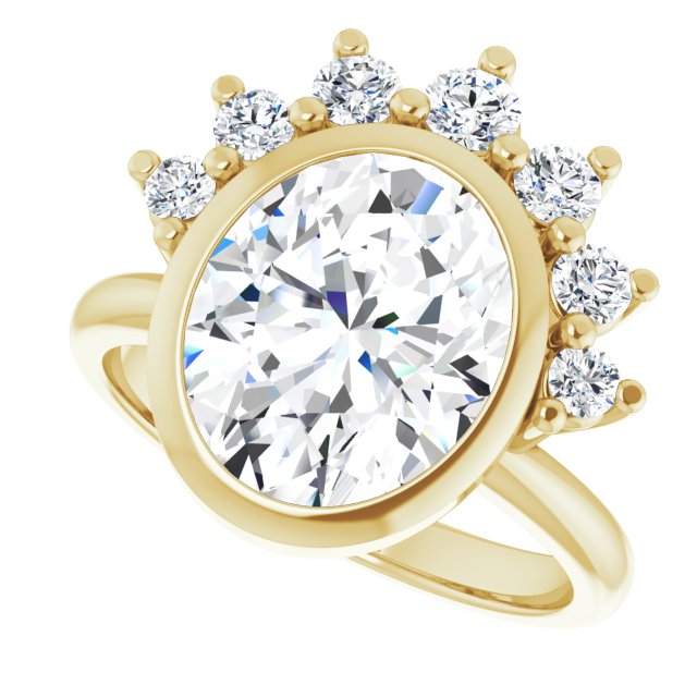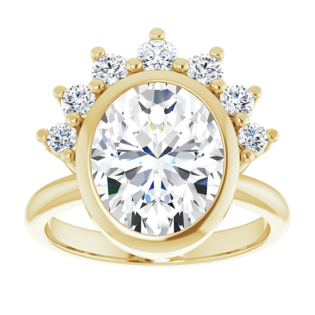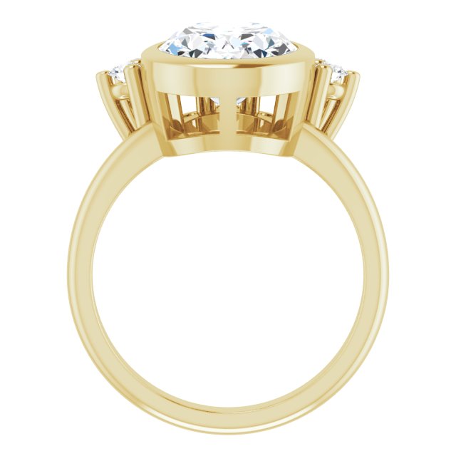 Brianna Women's 14K Gold Oval and Round Cut Lab-Grown Diamond Accented Thin Engagement Ring | Bezel Prong Set | 4ct