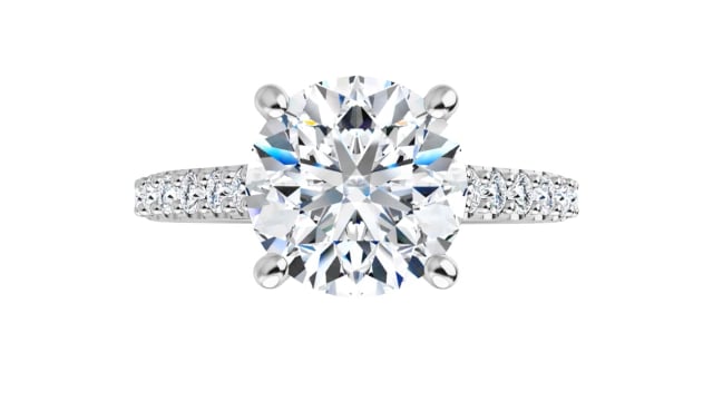 Brielle Women's 14K Gold Round Cut Natural Diamond Thin Engagement Ring | Prong Shared Set | 2ct