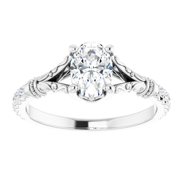 Brynlee Women's 14K Gold Oval and Round Cut Natural Diamond Thin Split Shank Engagement Ring | Prong Shared Set