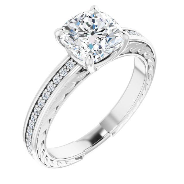 Camilla Women's 14K Gold Cushion and Round Cut Lab-Grown Diamond Accented Engagement Ring | Prong Pinpoint Set | 2ct