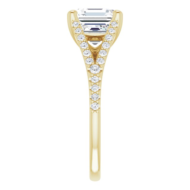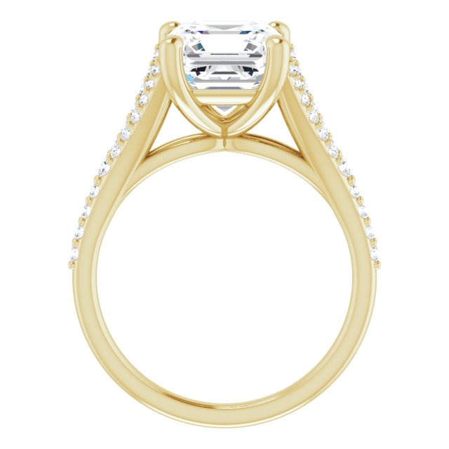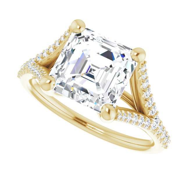Caroline Women's 14K Gold Asscher and Round Cut Natural Diamond Accented Engagement Ring | Prong Shared Set | 3ct