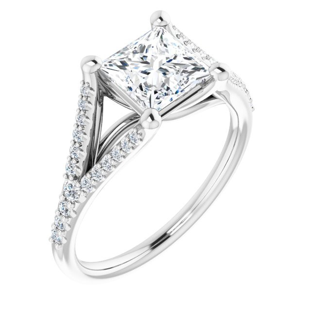 Caroline Women's Princess and Round Natural Diamond Accented Engagement Ring | 14K Gold | 3ct
