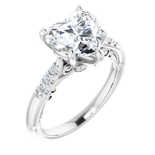 Catalina Women's Heart and Round Lab-Grown Diamond Accented Thin Engagement Ring | 14K Gold | VS1 | 3ct