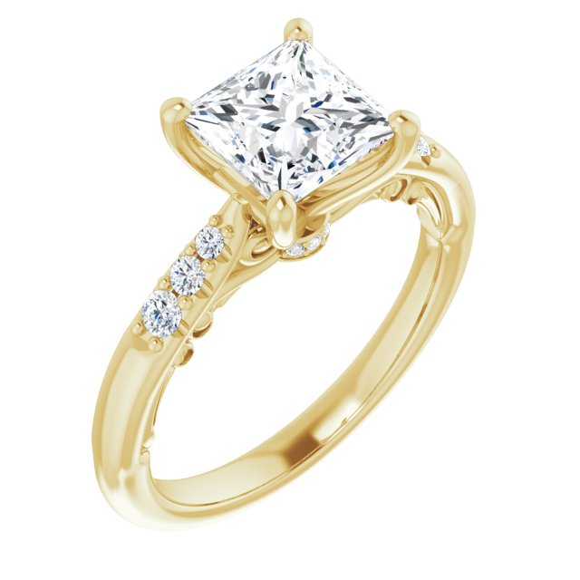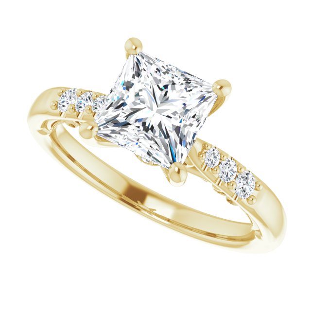 Catalina Women's Princess and Round Natural Diamond Accented Thin Engagement Ring | 14K Gold | 1ct