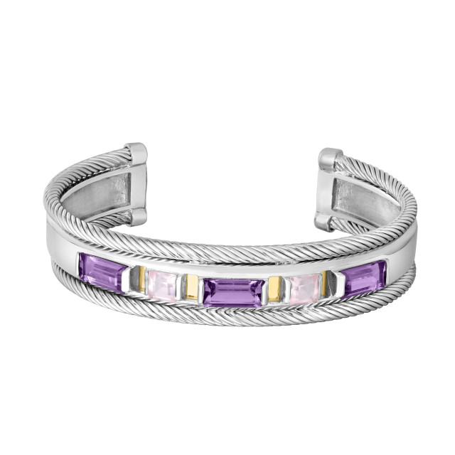 Women's 18K Gold/Sterling Silver Amethyst Quartz Bangle Bracelet