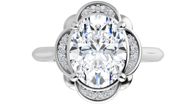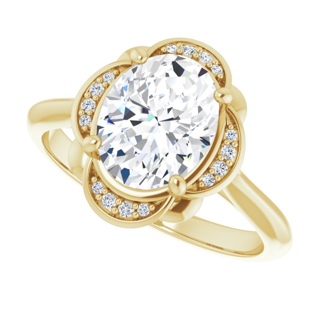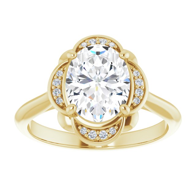 Cecilia Women's 14K Gold Oval and Round Cut Lab-Grown Diamond Accented Thin Engagement Ring | Prong Pinpoint Set | 2ct