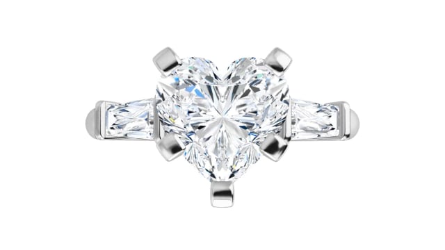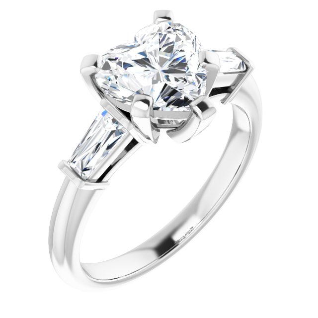 Celeste Women's 14K Gold Tapered Baguette and Heart Cut Lab-Grown Diamond Three-Stone Engagement Ring | Prong Bar Set | 2ct