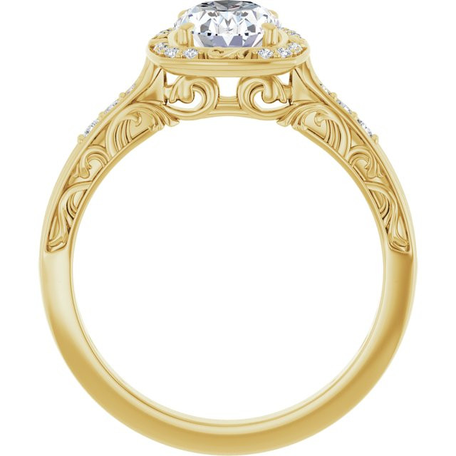 Celine Women's 14K Gold Oval and Round Cut Natural Diamond Engagement Ring | Prong Pinpoint Set | 1ct